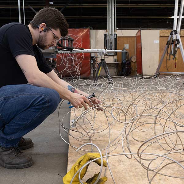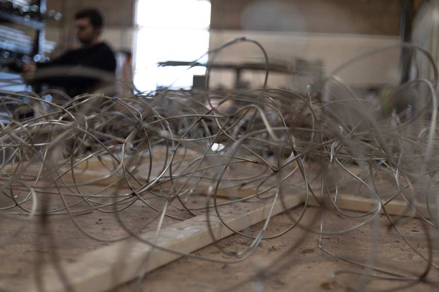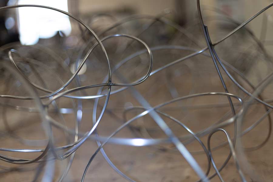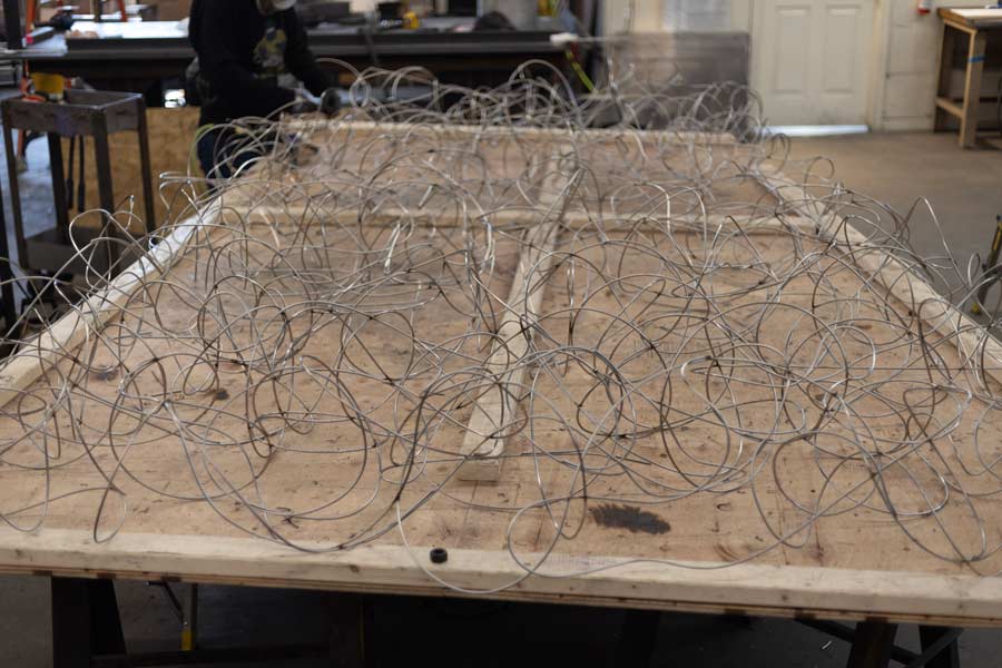 Alec started by creating a mockup of the piece out of stainless steel rod to test the design in the space.